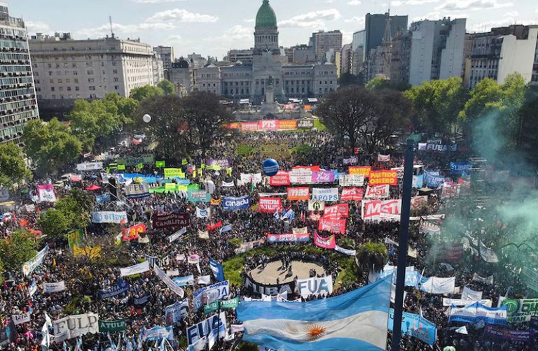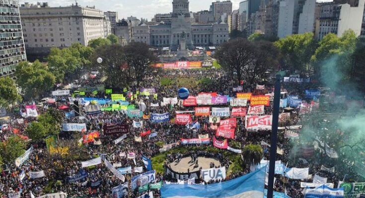 La crisis del financiamiento educativo, con especial impacto en la caída de los salarios docentes y en las condiciones del sistema científico, fue uno de los temas centrales del documento que se leyó en la Plaza del Congreso, en el acto central de la movilización