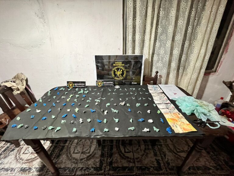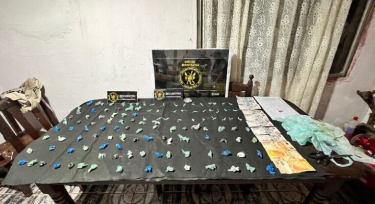 En una porción del domicilio hallaron 32 envoltorios de cocaína con el peso de 5.3 gramos, y 88 envoltorios con marihuana de 102.3 gramos. Labraron acta de secuestro del estupefaciente como así también de $36.000 pesos en efectivo y recortes de polietileno, ya que estos elementos están vinculados a la venta de drogas.