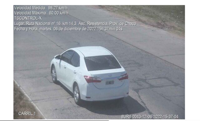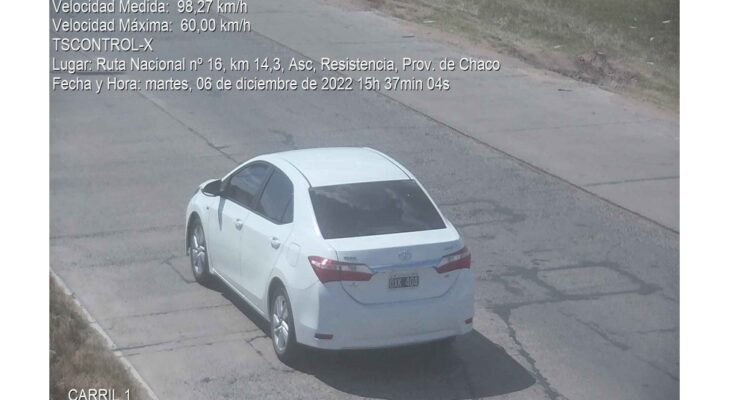 Atento a que registra un total de 27 veintisiete infracciones por exceso de velocidad, las mismas fueron captadas en los radares y con foto multa en uno de los accesos a Resistencia en el ingreso a la localidad de Puerto Tirol y acceso a Colonia Benítez