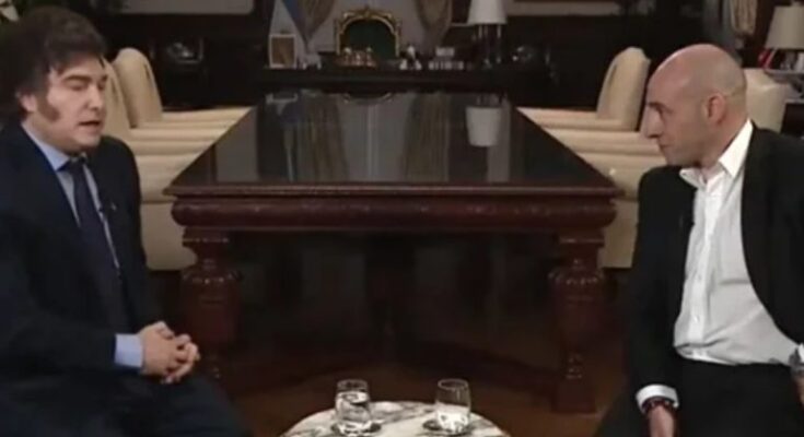 Milei además volvió a cuestionar al periodismo y advirtió que lo que le molesta es “la mentira” y no que lo cuestionen. “El periodismo es una actividad noble, pero la estrella es la noticia. El periodismo de opinión hizo que personas se creyeran dioses y te puedan arruinar la vida”, sostuvo.