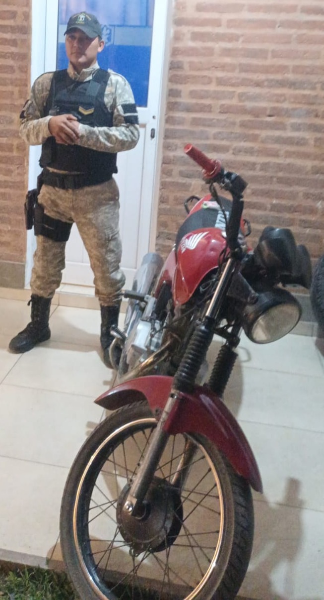 Anoche, el personal de la División Operaciones Motorizadas, realizaban tareas de prevención por el barrio Fuerte Apache, cuando observaron por calle Paraguarí y Mendoza, a un sujeto a bordo de una moto con un arma blanca en poder, promoviendo desorden y molestando a los transeúntes.