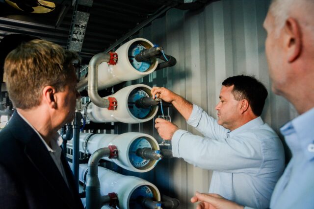 Junto al presidente de SAMEEP, Nicolás Diez el gobernador dejó inaugurada la Planta de Agua Potable que funciona por ósmosis inversa. “Con esa planta potabilizadora para que tengan el agua, disfrutar que nadie les niegue el derecho a tener algo tan importante como el agua”, manifestó el Jefe del Ejecutivo.