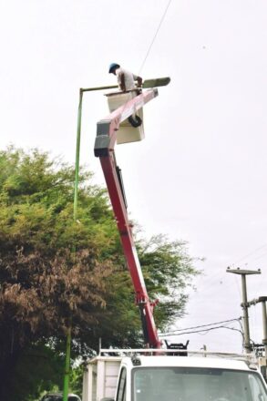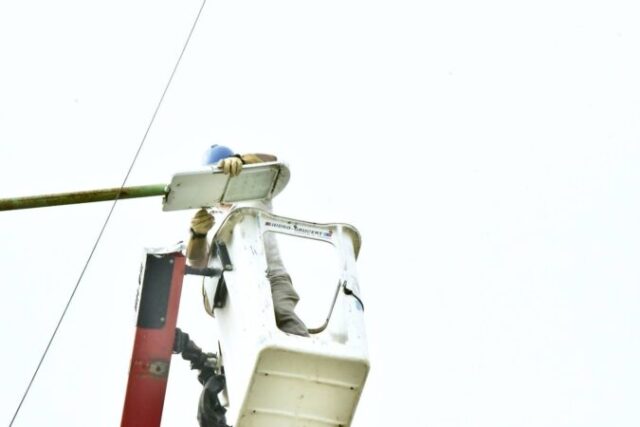 La Secretaría de Obras Públicas de la Municipalidad de Juan José Castelli continúa trabajando en el mejoramiento del sistema de iluminación urbana, llevando adelante el recambio de luminarias en el acceso a la ciudad, sobre Diagonal Eva Perón.