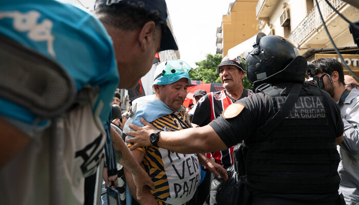 “Me agarraron y me tiraron como un misil. Volé como un misil: cabeza para adelante y las piernas estiradas. Hay muchos compañeros que vieron como caí. Los voy a denunciar porque se les veía la cara”, contó Contreras a la salida del Hospital Ramos Mejía, a donde fue trasladado. El hombre de 74 años, que vive en Avellaneda y todas las semanas va a la plaza con una whipala (la bandera de los pueblos originarios) en los hombros. “Me dijeron acá, en el hospital, que me tienen que operar, tengo una fractura. En la forma que hoy me tiraron demuestra que es ensañamiento lo que tienen con nosotros”, agregó.