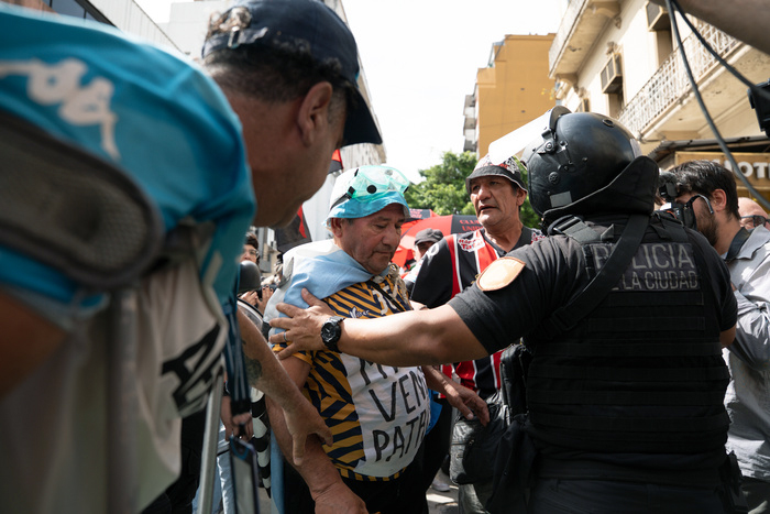 “Me agarraron y me tiraron como un misil. Volé como un misil: cabeza para adelante y las piernas estiradas. Hay muchos compañeros que vieron como caí. Los voy a denunciar porque se les veía la cara”, contó Contreras a la salida del Hospital Ramos Mejía, a donde fue trasladado. El hombre de 74 años, que vive en Avellaneda y todas las semanas va a la plaza con una whipala (la bandera de los pueblos originarios) en los hombros. “Me dijeron acá, en el hospital, que me tienen que operar, tengo una fractura. En la forma que hoy me tiraron demuestra que es ensañamiento lo que tienen con nosotros”, agregó.