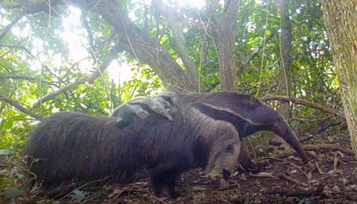 La semana pasada, las cámaras-trampa colocadas en el Parque Iberá registraron a la madre con sus dos crías en el lomo, un espectáculo muy singular. En Argentina no hay ningún registro previo de este tipo, y en vida silvestre solo conocemos un registro de osos hormigueros mellizos que ocurrió en el Pantanal Sul en el Mato Grosso, en Brasil, donde trabaja la organización Onçafari, informó la fundación Rewilding.