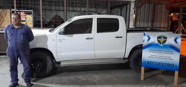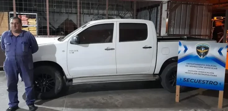 Hoy, peritos de la División Vehicular Metropolitana de Policía Caminera secuestraron una camioneta marca Toyota Hilux, blanca, debido a que presentaba adulteraciones.