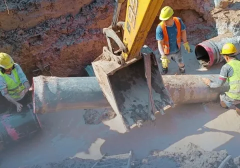 Desde Sameep informaron que este domingo, agentes de la empresa trabajaron en la reparación del Acueducto que abastece a la Cisterna Norte, tras detectarse la rotura de un tramo de cañería de 500 milímetros en la zona de Monte Alto.