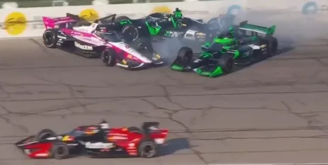 El argentino intentó esquivarlo pegado a la pared en la curva del óvalo, pero el auto de Malukas, perteneciente al equipo Meyer Shank Racing, se dirigió hacia el mismo lugar, provocando un impacto inevitable.