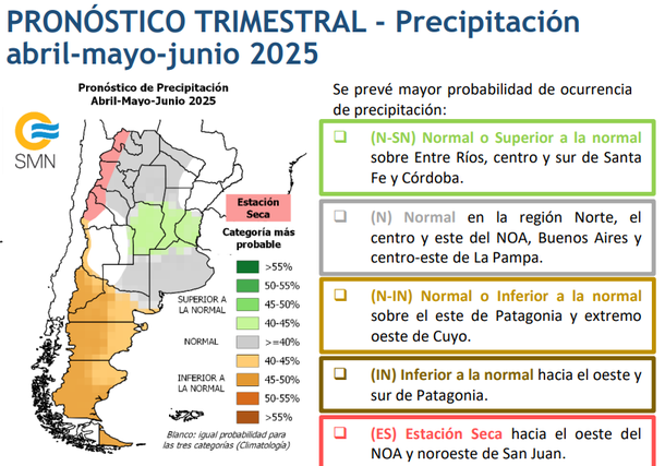 El informe trimestral del SMN dado a conocer este martes primero de abril anuncia que solo en la región central del país habrá más lluvias del promedio habitual.