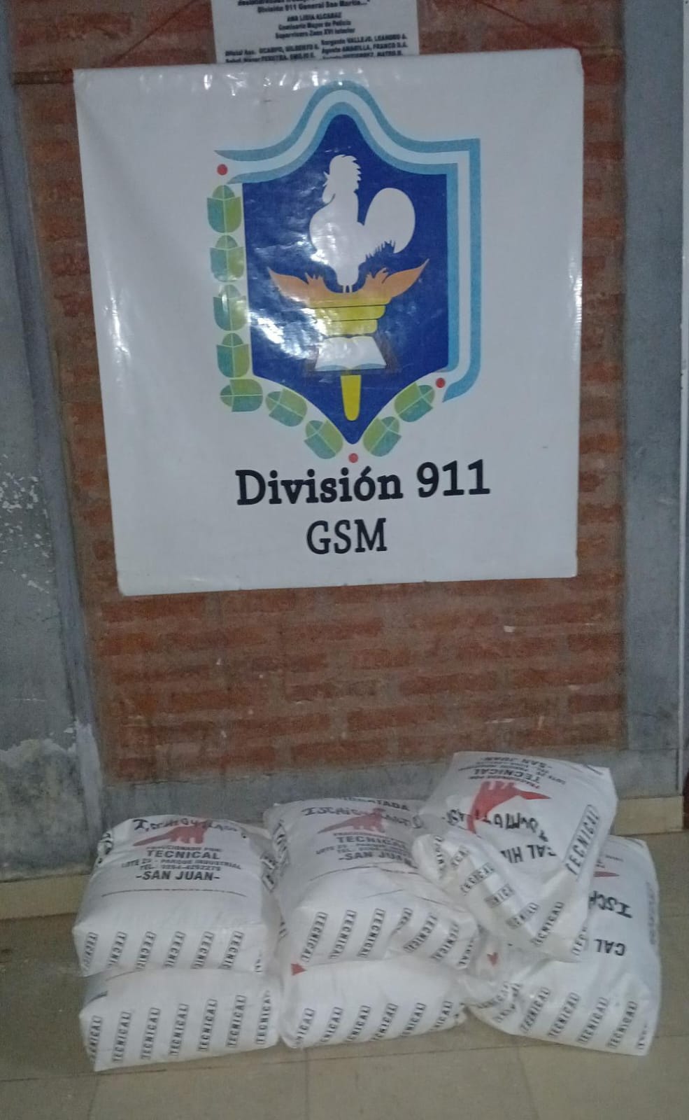 Seguidamente, los agentes iniciaron la búsqueda del sindicado quien fue localizado dentro de un monte. En su poder incautaron cinco bolsas de cal hidratada y las trasladaron hasta la División 911. Una vez allí, la denunciante se hizo presente y reconoció las bolsas como de su propiedad. El presunto autor fue notificado en causa “Supuesto Robo” y alojado en la Comisaría local.
