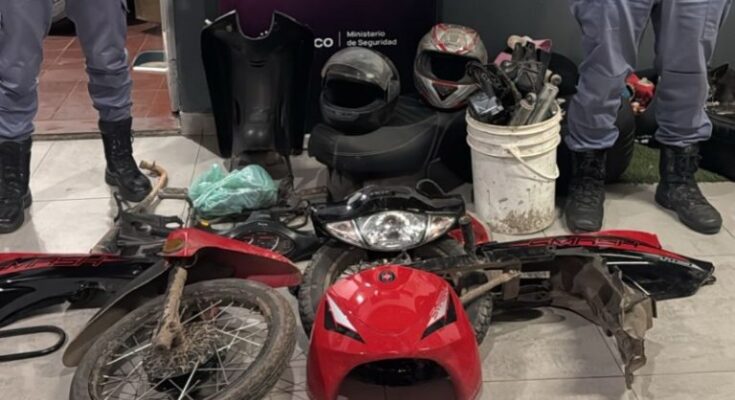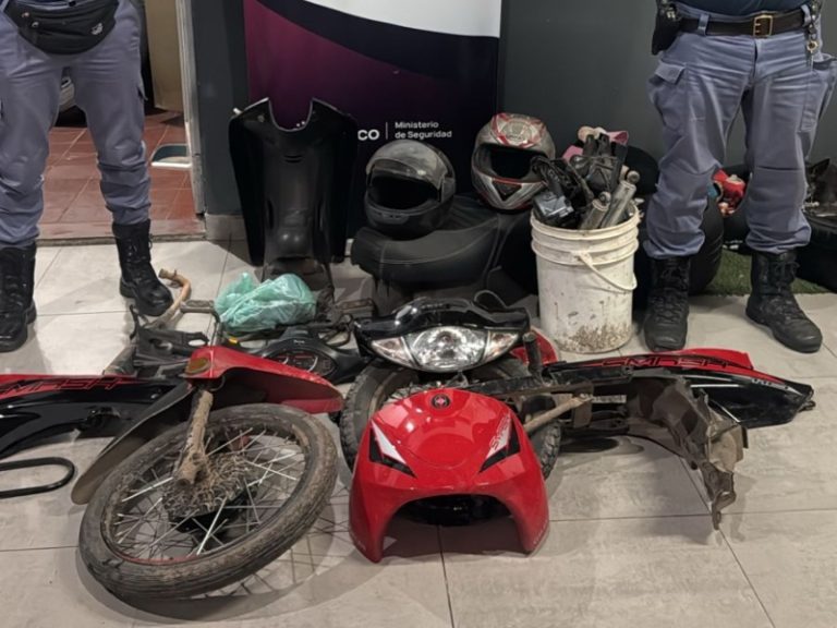 Es así que, en la madrugada cerca de las 2:00, el personal policial se dirigió a una zona de monte ubicada en inmediaciones de las avenidas Marconi y Güemes, donde logró encontrar y secuestrar una gran cantidad de motopartes pertenecientes al rodado denunciado: rueda delantera con guardabarros, plásticos negros y rojos con inscripción “Smash 110”, plástico de pechera, rueda trasera, caño de escape, asiento, baúl, apoya pies, cubre piernas, amortiguadores traseros, luces delantera y trasera, dos cascos y un balde con partes varias. También fue hallado un cárter con numeración coincidente.