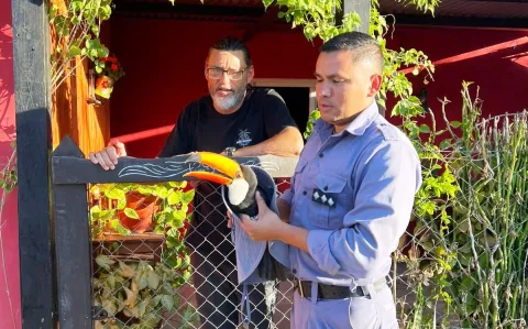 Este jueves, alrededor de las 18, personal de la Sección Rural intervino en el rescate de un animal silvestre, luego de recibir un llamado telefónico de ciudadano de 51 años, quien informó sobre la presencia de un tucán en un asilo de ancianos.