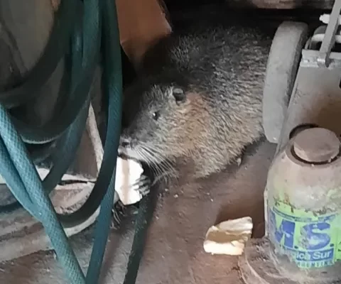 Se trataba de una nutria de gran tamaño que había ingresado al local y se escondido entre unas ruedas. Los agentes rescataron al animal y lo llevaron hasta una zona de monte, donde fue liberado en su hábitat natural.