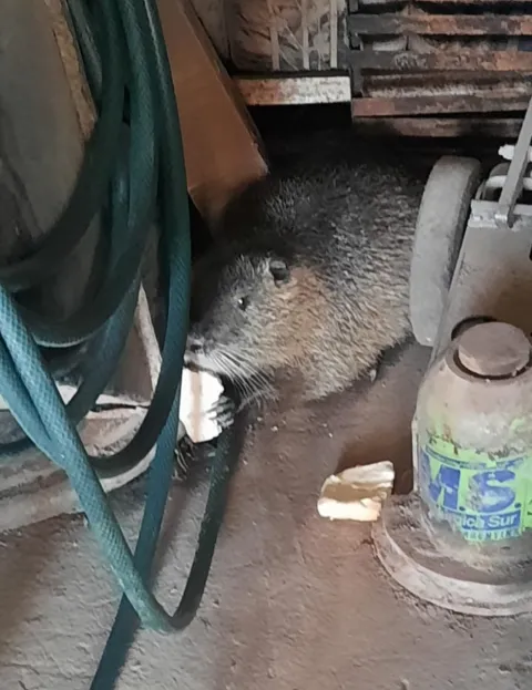 Se trataba de una nutria de gran tamaño que había ingresado al local y se escondido entre unas ruedas. Los agentes rescataron al animal y lo llevaron hasta una zona de monte, donde fue liberado en su hábitat natural.
