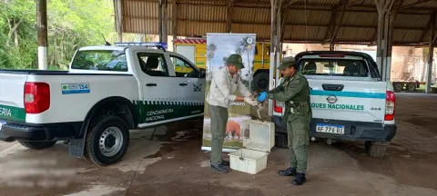 Gendarmes del Escuadrón 16 «Clorinda», apostados en el control «Gendarme Fermín Rolón», asistieron al ejemplar y posteriormente fue entregado a las autoridades del Parque Nacional «Pilcomayo».