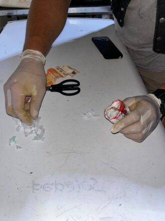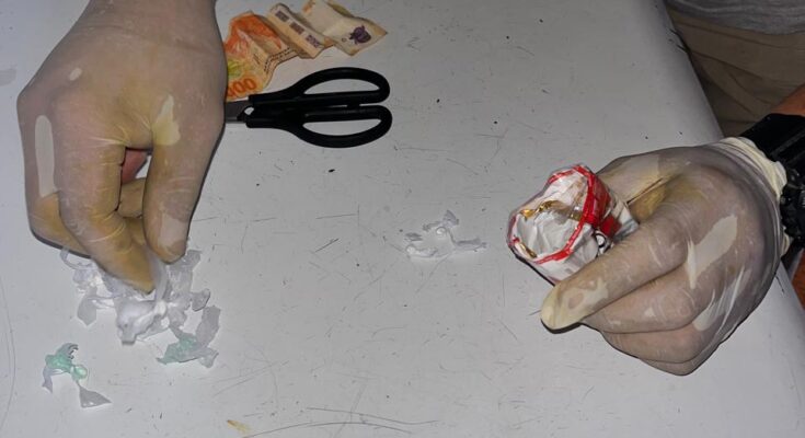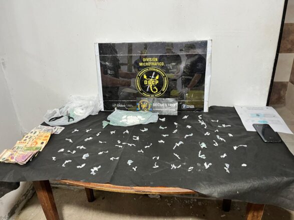 El procedimiento fue llevado adelante por personal de la División Microtráfico Metropolitana, quienes tras el registro del inmueble lograron el secuestro de 60 envoltorios y un paquete de mayor tamaño con sustancia que, tras la prueba de campo, arrojó resultado positivo para cocaína con un peso total de 63,1 gramos. Además, incautaron dinero en efectivo, un teléfono celular, una tijera, recortes de polietileno y un cuaderno con anotaciones.