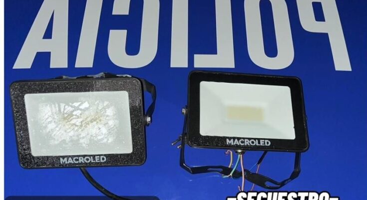 Este jueves a las 1:35 en la avenida Arribalzaga al 1100, los efectivos de la División Patrulla Preventiva, demoraron a un joven de 25 años con dos reflectores con sus cables de alimentación.