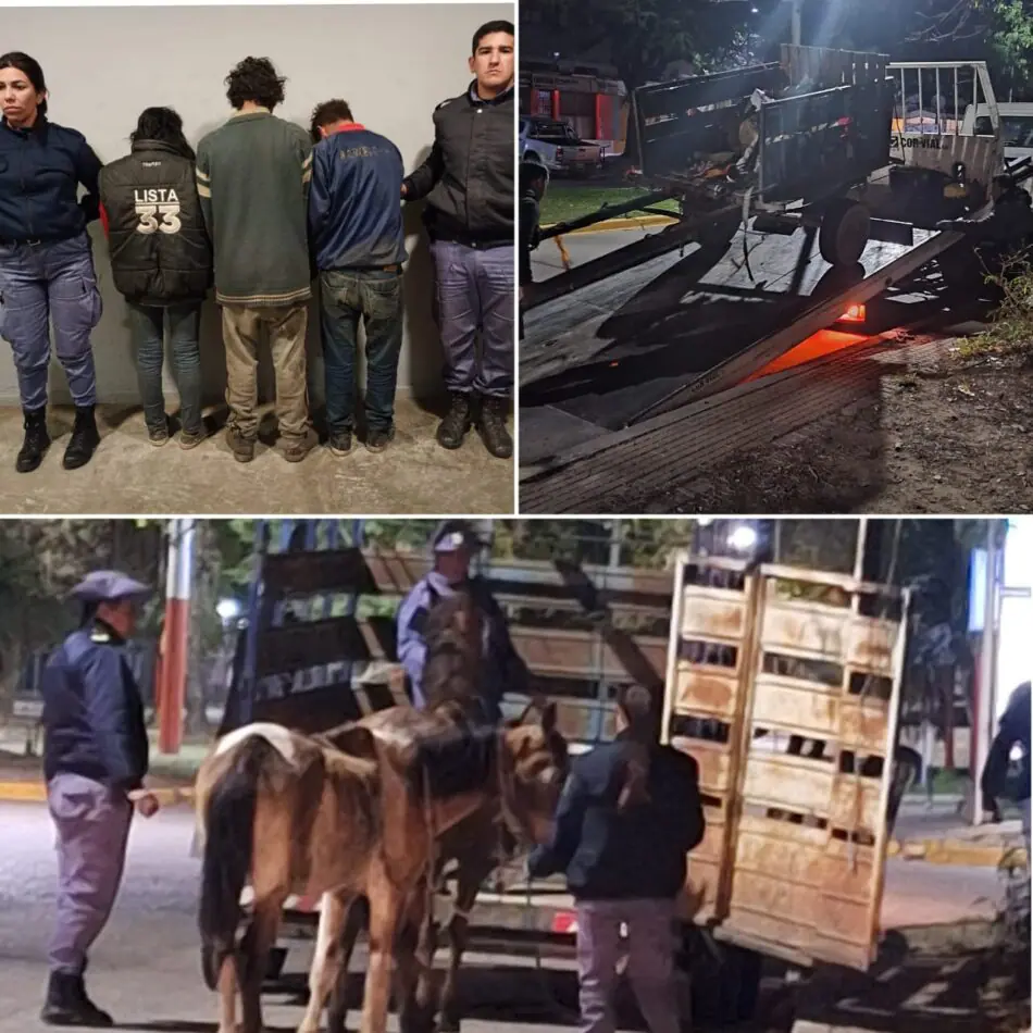 Una vez en el lugar, los agentes se encargaron inicialmente de la situación de los equinos, solicitando la intervención del Departamento de Seguridad Rural y Ambiental. Los animales fueron trasladados para recibir mejor atención y protección. Posteriormente, identificaron a los tres sujetos a bordo del carro, de 20, 29 y 30 años.