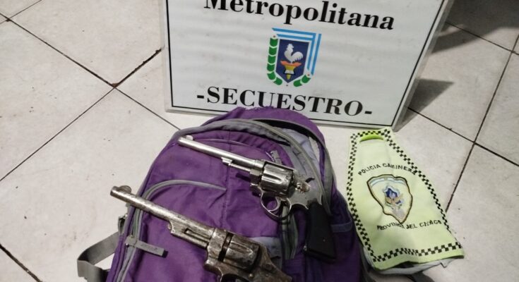 Durante el operativo, los efectivos de Caminera interceptaron a un motociclista y, al verificar sus pertenencias, hallaron en el interior de una mochila dos revólveres calibre .38, sin marca visible y sin cartuchos.