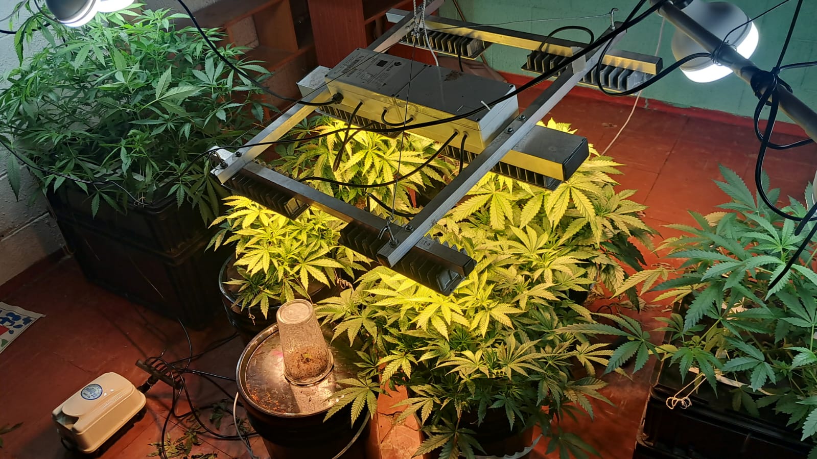 Al inspeccionar el inmueble, constataron la existencia de un invernadero con plantines de cannabis y equipamiento utilizado para su cultivo. Por ello, se dio intervención al Departamento Drogas Peligrosas, que confirmó la presencia de marihuana.