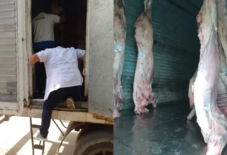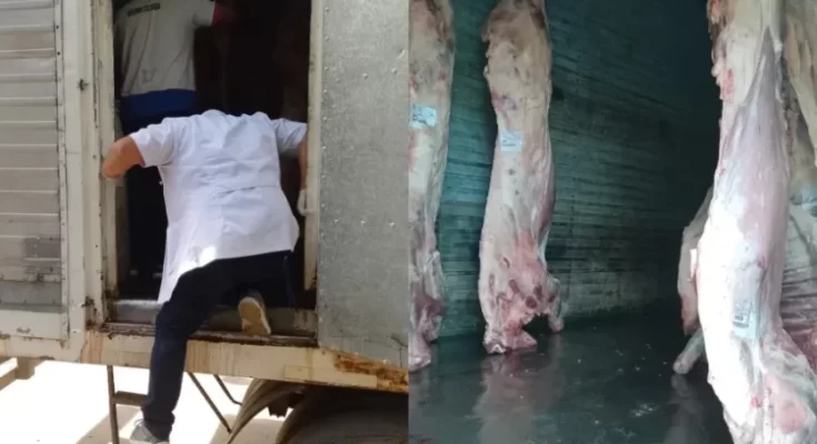 Durante el procedimiento, intervinieron un camión marca IVECO, modelo 170E22T, el cual poseía semirremolque tipo cámara frigorífica y en su interior encontraron 74 media reses de animal bovino a una temperatura de 30 grados cuando lo máximo permitido es 9°.