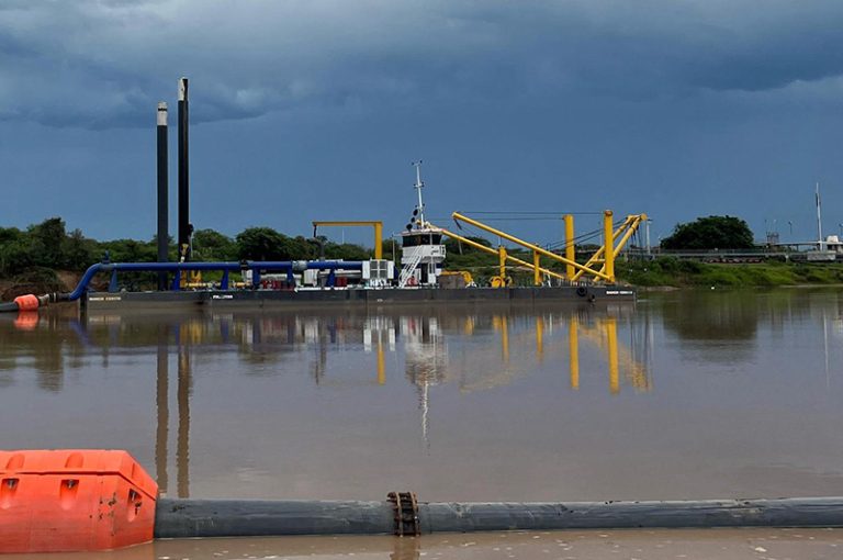 Los trabajos, que consisten en profundizar el calado del Riacho Barranqueras, en un trayecto de 8 kilómetros aproximadamente, “están avanzando a un ritmo sostenido” señaló Pilar y afirmó que esto servirá para dejar operativo el sector de maniobras y descargas de combustible en el muelle de la empresa YPF.
