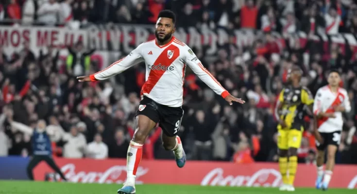 El delantero colombiano se despachó con un doblete para posicionar al Millonario como el mejor puntero de la tabla general de la fase de grupos de la Copa. El diablito Echeverri estuvo desde el arranque.