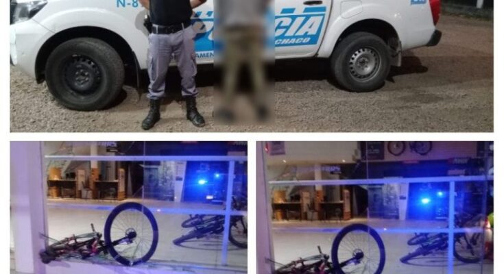 En el lugar, la prevención constató el daño del vidrio del local y sobre su entrada se encontraba una bicicleta deportiva con trabas, la cual aparentemente intentaban sustraer. Asimismo, personal de la División Video Vigilancia, pone en conocimiento que el presunto autor fue detenido en calle Santa Fe y calle 2.