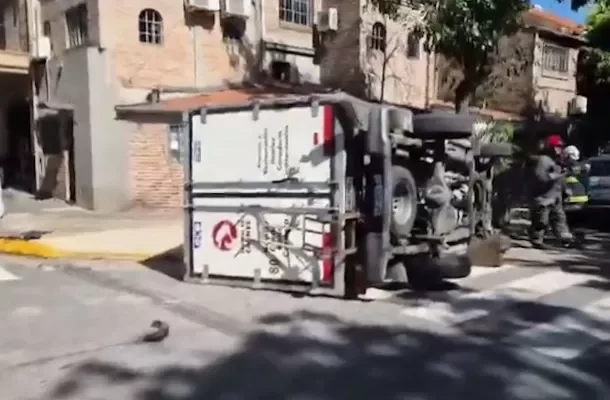 Cuatro móviles del SAME trabajaban en el lugar del accidente junto a los Bomberos de la Ciudad, quienes llevaban adelante las tareas necesarias para colocar nuevamente el vehículo en su posición y despejar la zona lo antes posible.
