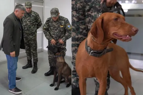 Los canes que van a colaborar en el operativo son Sacha, especialista en búsqueda de Restos Humanos, y Baisha, especialista en búsqueda de personas extraviadas, con sus respectivos guías, a cargo de un oficial.