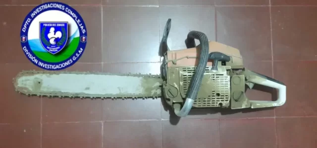 Esta mañana, el personal de la División Investigaciones dispuso un operativo para dar con una motosierra denunciada por robo el mes pasado. El ilícito ocurrió en un campo ubicado en la localidad de Presidencia Roca, cuando el peón del lugar notó la faltante informó al propietario y luego realizó la denuncia.