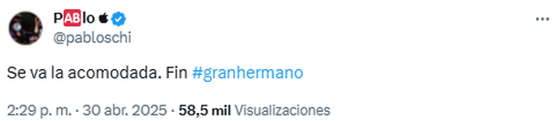 «Se va la acomodada. Fin», escribió en los últimos días, haciendo que el debate comience en la red social.