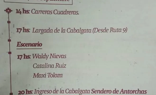 - 08:30 hs: Carreras Cuadreras, Carreras de Petizos, Carreras de Sortijas