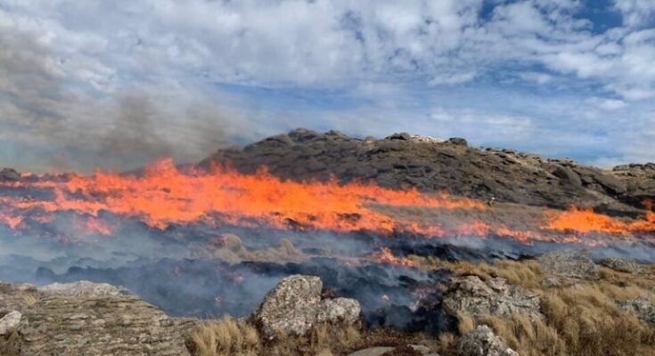 El incendio forestal en el cerro Champaquí de Córdoba ya afectó a más de 5.500 hectáreas entre los valles de Traslasierra y Calamuchita, según informó el Gobierno provincial este miércoles. El combate de las llamas –que lleva cuatro días– implica el trabajo de más de 300 personas. Esta mañana, las llamas avanzaron hacia el sur, pero por el momento no hay viviendas en riesgo.