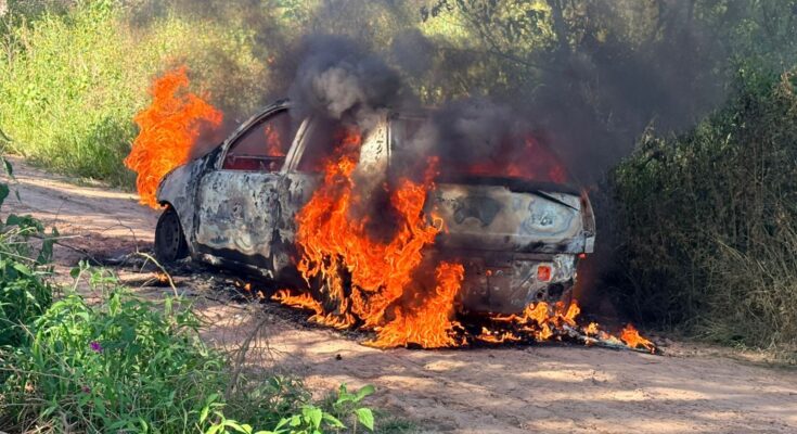 Un Fiat Palio terminó completamente incendiado esta tarde en el paraje 5 Bocas, en la zona rural de Puerto Vilelas.