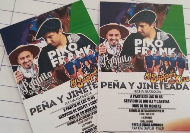 18 horas inicio de la Bailanta con los PRIMOS IUDT, TITIRO FIGUEREDO desde Formosa, embajadores PIKO FRANK, PAQUITO OCAÑO del norte Cordobés y el SUPER DE ORO, Animación JUAN CARLOS BARROS Organiza e invita EL GRAN PIKO FRANK