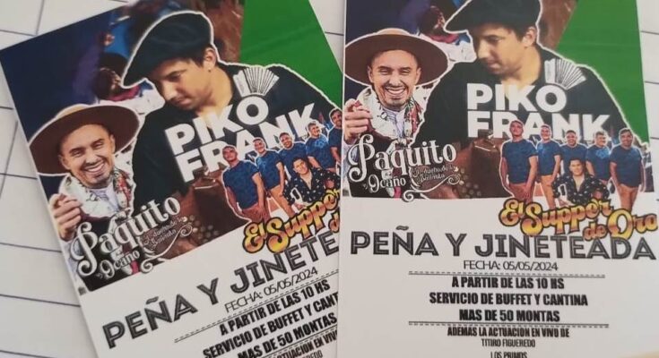 El próximo 5 de mayo SE VIENE al CHACO la gran fiesta del Cantor PIKO FRANK, el evento se realizara en el Predio Cruz y Fierro del Centro Tradicionalista Juan Azurduy de Juan José Castelli, iniciara a las 10,00 horas en el predio, previo al evento se realizara una gran cabalgata con todas las agrupaciones Gauchas de la localidad y de la región.-
