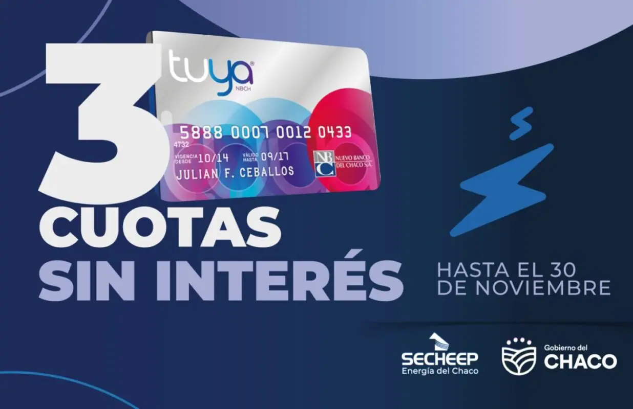 La empresa estatal de energía eléctrica, Secheep, ha comunicado que continua con el plan de pago en 3 cuotas sin intereses, disponible hasta el 30 de noviembre para todos los usuarios. Esta opción, válida exclusivamente para quienes utilicen la tarjeta TUYA del Nuevo Banco del Chaco, busca aliviar la carga financiera de los ciudadanos en un contexto económico desafiante.