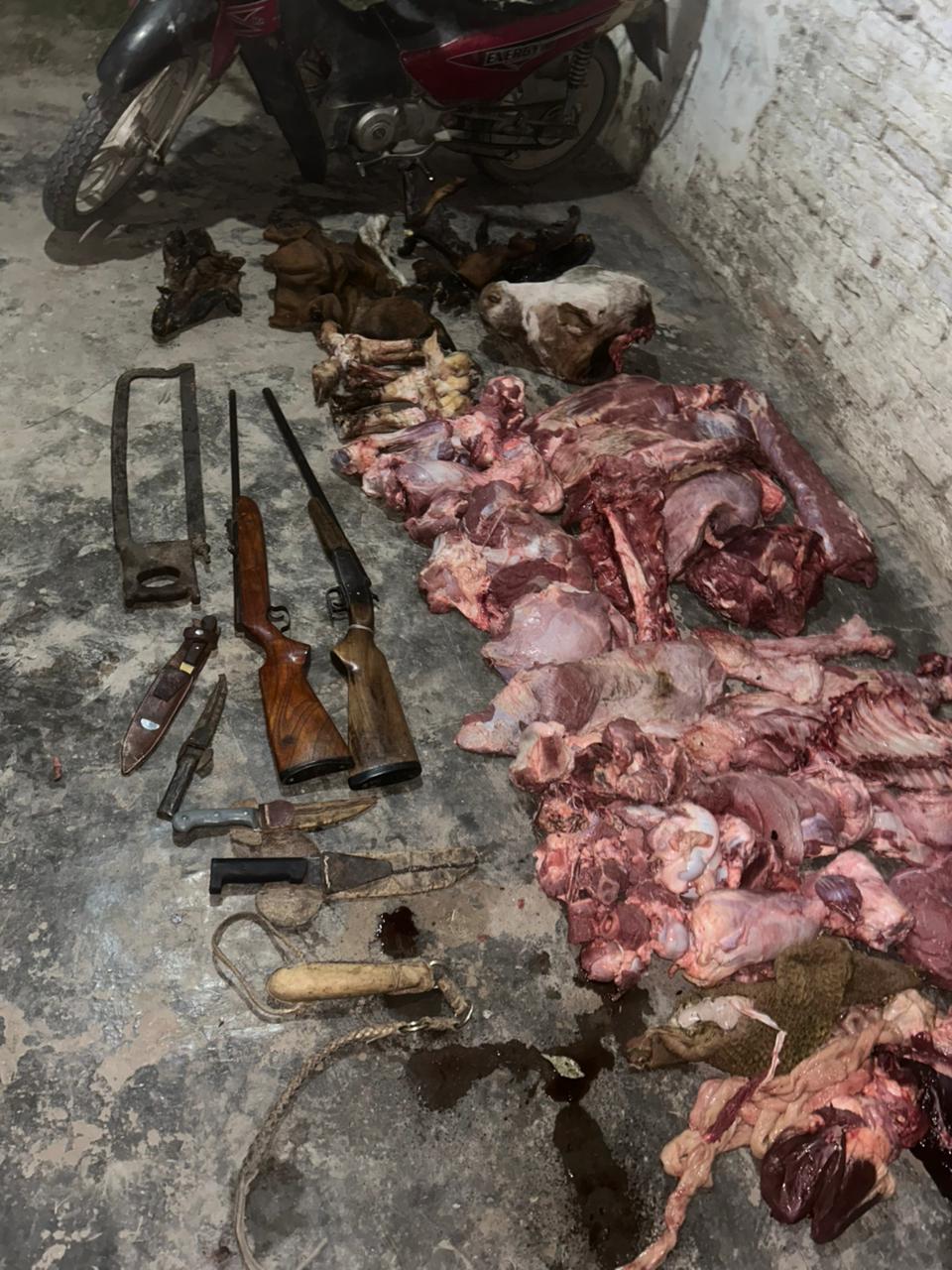 Los efectivos rurales se dirigieron hasta dicho lugar y constataron que la ciudadana autorizó dicha faena, incluso hallaron allí una mesa con cuchillos, sierras, un aire comprimido y una escopeta que habían utilizado. Se consultó con la fiscalía rural que dispuso el secuestro del producto cárneo por no ser apto para consumo, y el secuestro del arma de fuego.