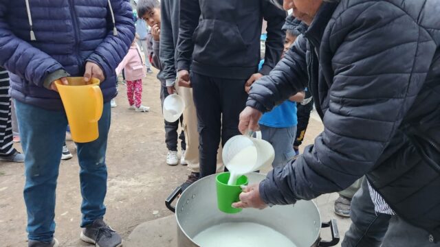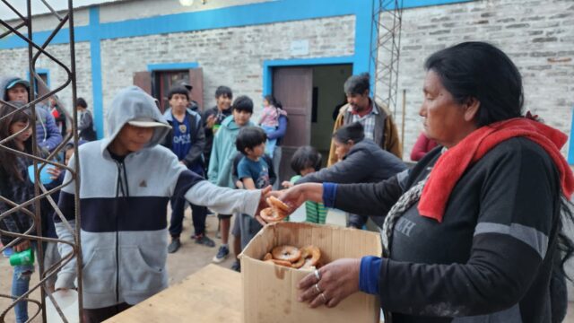 👍Allí, las madres del barrio se encargan con mucho esfuerzo y dedicación de preparar la merienda, que consiste en chocolate caliente acompañado de pan o rosquillas, generando un espacio de contención y alimentación para los más pequeños.
