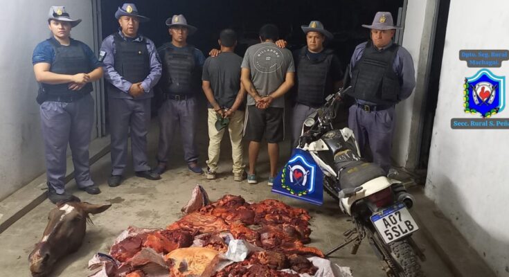 En inmediaciones de Ruta Nacional N° 16, los efectivos lograron detener la marcha del rodado y aprehender a ambos masculinos, haciendo uso de la fuerza mínima e indispensable. Posteriormente, otra comisión policial constató en el lugar de origen el hallazgo de restos de una faena equina de reciente data, sector desde donde además se habrían dado a la fuga otros individuos a bordo de la segunda motocicleta.