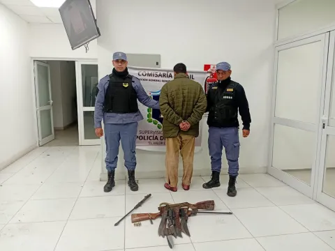 Ante ello, los agentes decidieron ingresar al domicilio y reducir a un hombre de 38 años, quien tenía en la mesa de su casa siete cuchillos de distintos tamaños y un aire comprimido modificado a calibre 22 con 20 cartuchos.