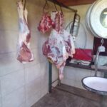 En una pieza acondicionada (revestido en su totalidad piso y pared con cerámico, cierra de pecho, andamios colgantes en pared con correspondientes ganchos carniceros, mesada de material, balanza), hallaron colgados de dichos ganchos, varios cortes de carne.
