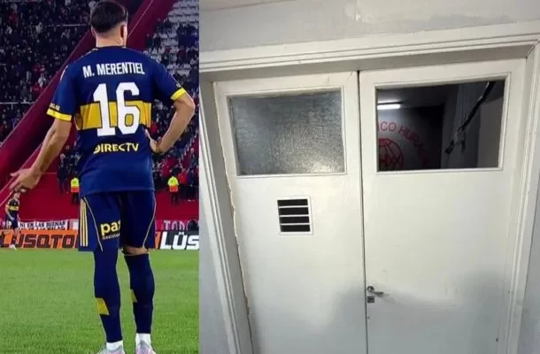 Merentiel se dirigió directamente al túnel con evidente fastidio tras enterarse de su salida, en una situación que fue explicada más tarde por el entrenador xeneize como un “problema de papeles”. Sin embargo, la reacción del jugador fue contundente: de manera impulsiva, terminó dañando una de las entradas del vestuario.