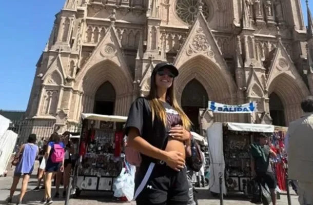 En las puertas de la iglesia Sol posó agarrándose la panza de apenas algunas semanas y escribió en agradecimiento: “Gracias Virgencita”.