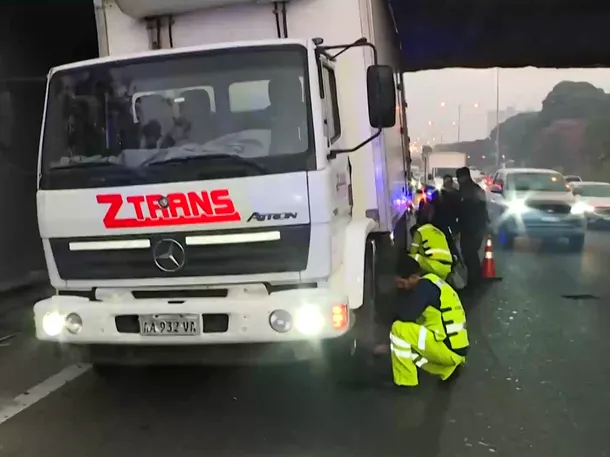 Según informaron fuentes oficiales, el vehículo impactó contra la base del paso elevado y quedó inmovilizado en el carril lento, lo que generó una reducción en la capacidad de circulación. El incidente, además de ocasionar demoras, puso en evidencia una infracción, ya que de acuerdo con la normativa vigente el camión no estaba habilitado para transitar por ese sector.