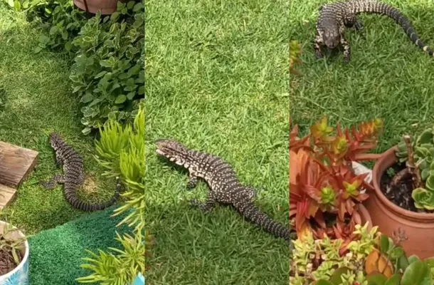 La última visita del reptil ocurrió este mismo lunes, cuando cerca del mediodía los habitantes de la casa se encontraron con el lagarto descansando serenamente sobre el césped. Luego de pasar algunos minutos bajo los rayos del sol, aprovechó a comer algunas uvas que le convidaron y se retiró.