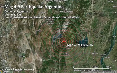 Un sismo de magnitud 4,4 en la escala de Richter se registró este martes por la noche en la provincia de Córdoba y fue percibido en numerosas localidades , especialmente en el norte provincial. El movimiento telúrico ocurrió a las 20:07 y tuvo su epicentro en el departamento de Ischilín, al noroeste de la capital cordobesa.
