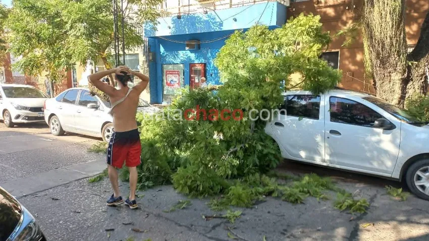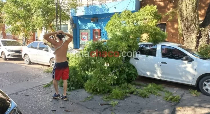 viernes por la mañana, una enorme rama de árbol cayó sobre varios automóviles estacionados en la calle Saavedra al 163, de Resistencia.